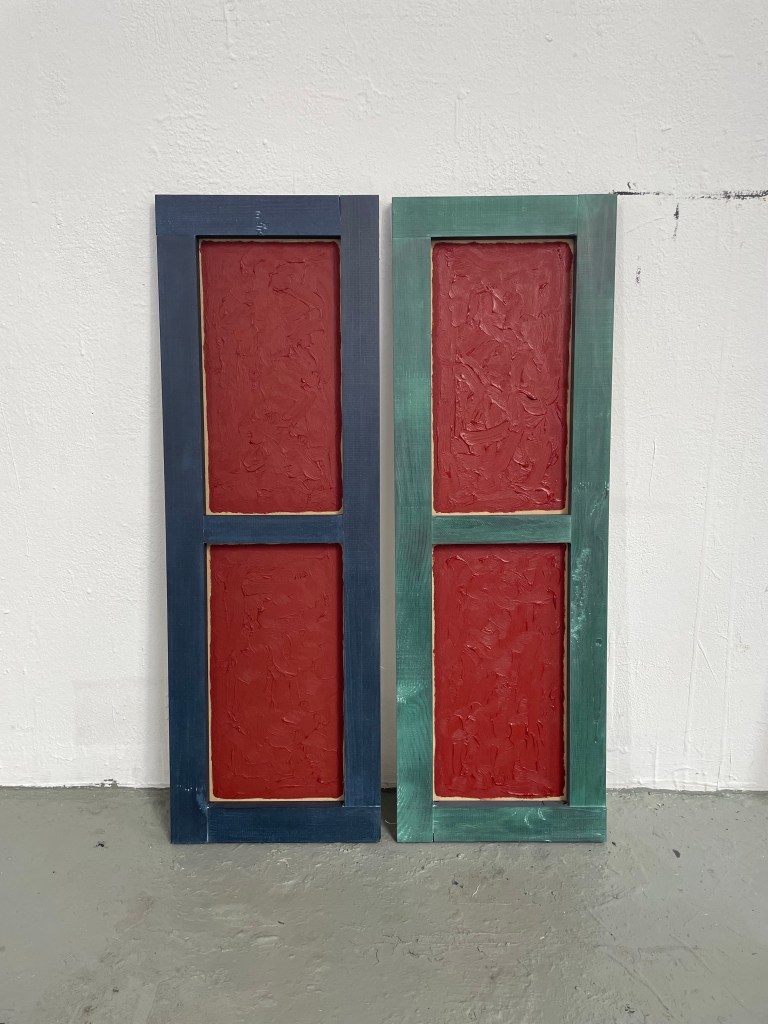 Huile sur toile tendu sur objet peint